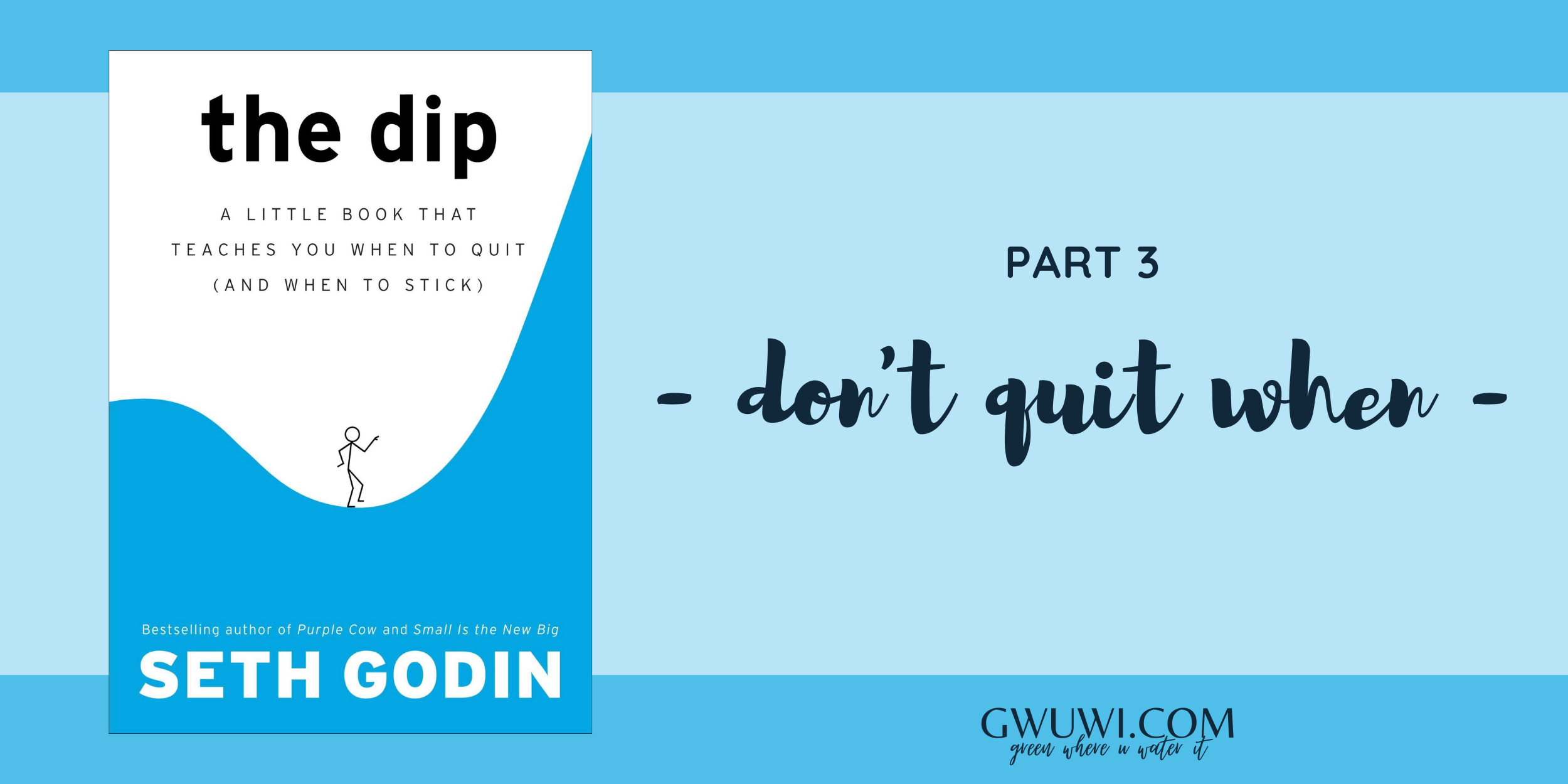 Just a side to express my opinion: it’s still important to keep balance in mind. Leading a balanced life will help you avoid burnout. You’re going to be in this for the long haul, so you need to be able to maintain pace in order to actually make it to the end of the dip. The way to do that is to keep working on your goal in a way that allows you to see visible results while still sustaining enough energy to keep going and not give up until you’ve reached the end.