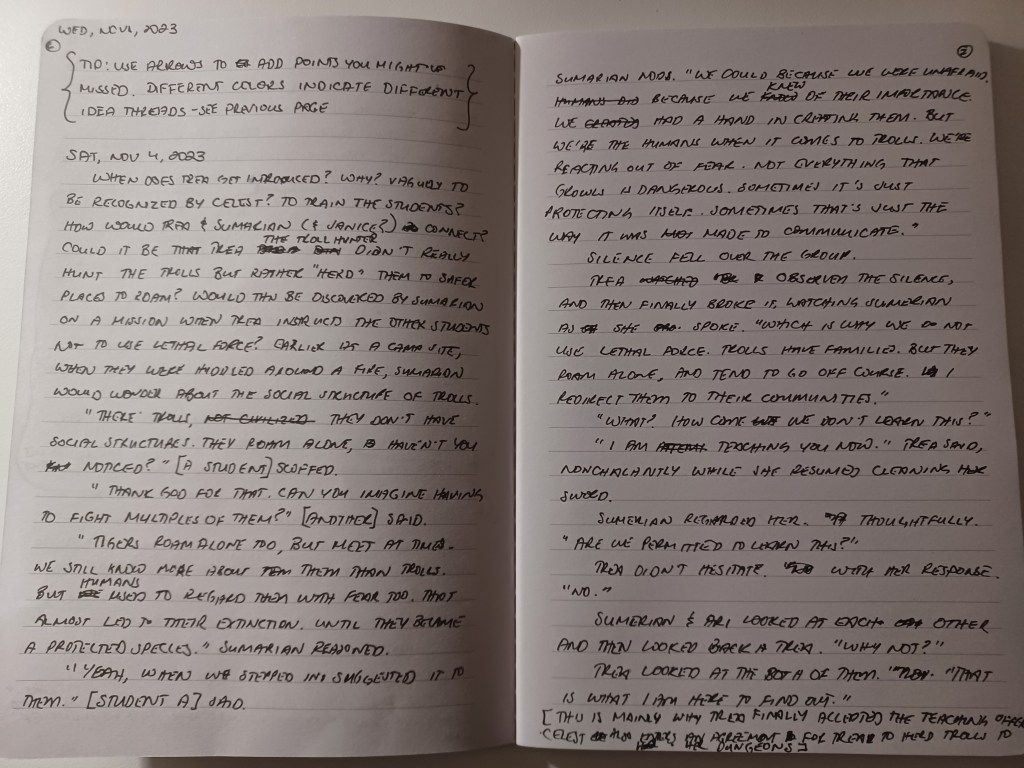 - Use boxes for admin notes. For example, structure of work (long, novella, series, etc.)