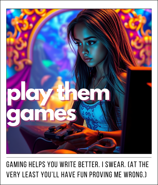 So hear me out: why not keep that big one aside for a bit while you work on side projects to up your skills? Kind of like a video game. Do some side quests to level up your experience points before you tackle the main quests again. (If you’ve never played a video game your entire life—that is, you’re a bookworm and only a bookworm—please expand your horizons and go play some. I promise it’s worthwhile. It will make you a better writer.)