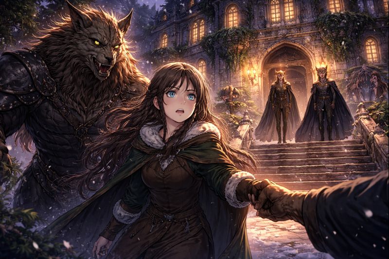 During a winter hunt, Feyre kills a large wolf she suspects may have been a faerie in disguise. Shortly after, a terrifying beast arrives at her cottage demanding retribution. Feyre is taken across the wall to Prythian as payment for the life she ended, leaving her human world behind permanently.