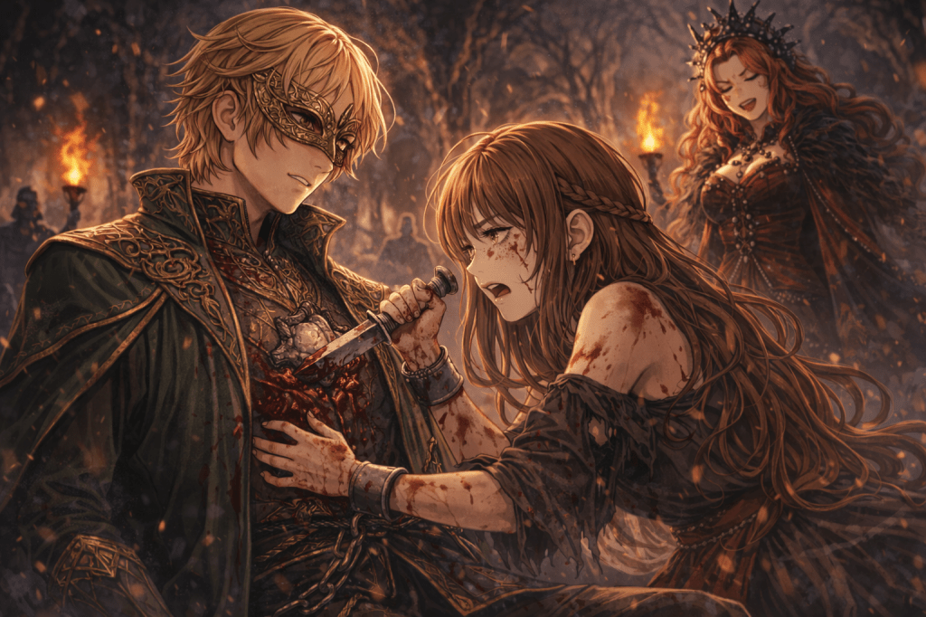During her final trial, Feyre is ordered to kill three innocent fae with ash daggers.